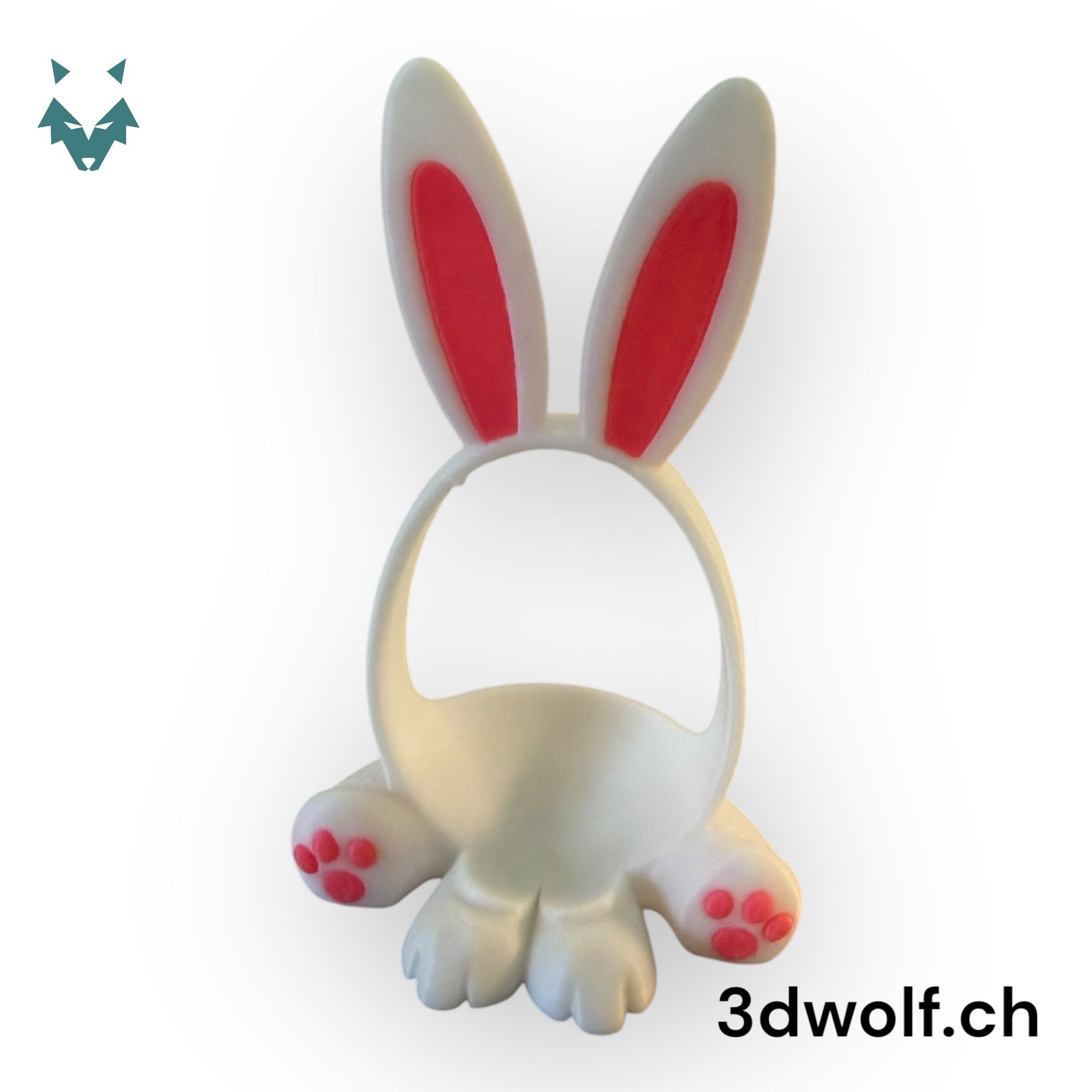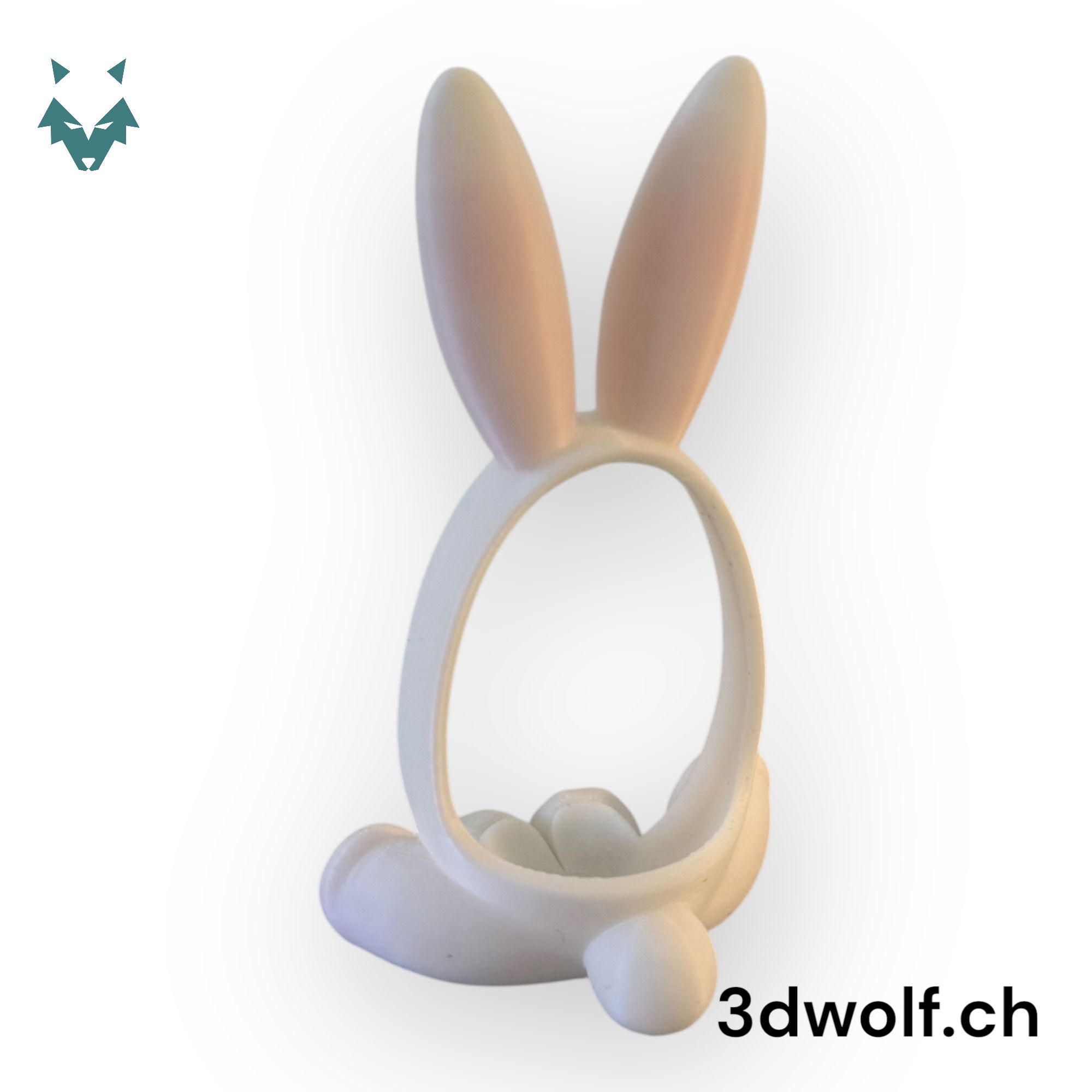 Das Ei wird einfach in die Öffnung eingesetzt und der Hase wird so zu einem lustigen Ostergeschenk oder Tischdeko.